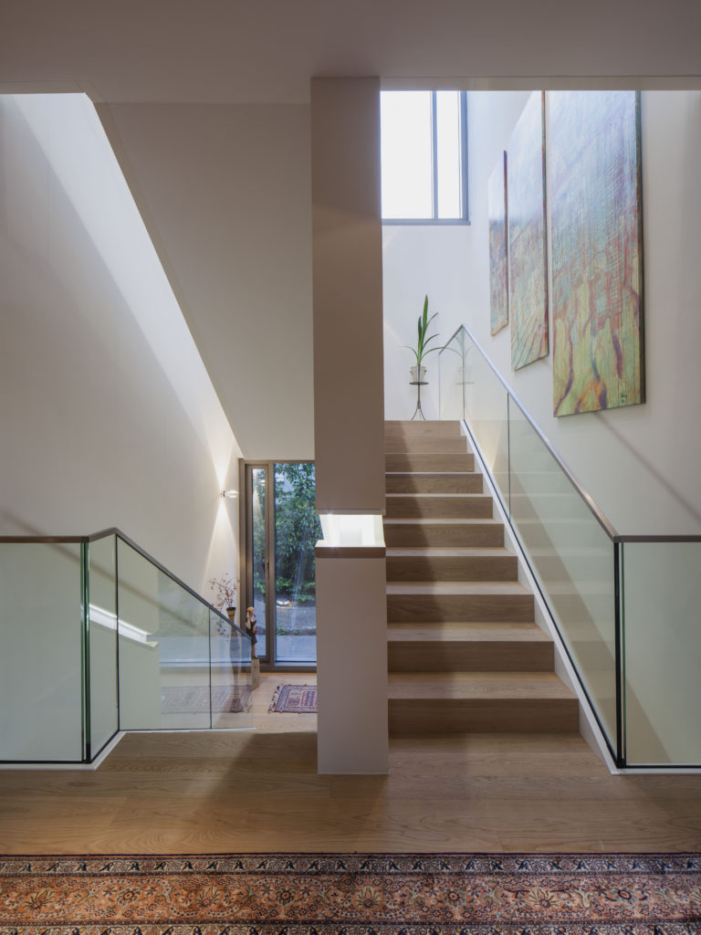Im Zusammenspiel zwischen abwechslungsreichen Raumkompositionen und sorgfältig auf einander abgestimmten Materialien bildet das Haus den Rahmen für die individuellen Erinnerungsstücke und Möbel der Bauherrn.