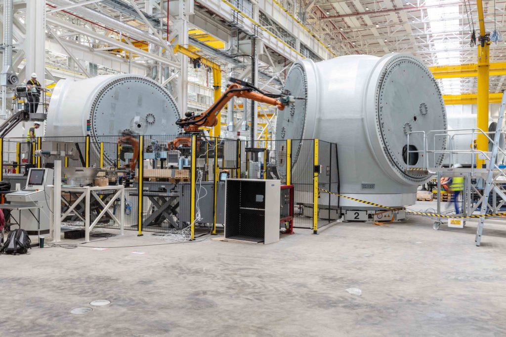 Das im Jahr 2018 eröffnete Werk ist die weltweit modernste Fabrik für Offshorewindturbinen. Hier findet die Endmontage von Generatoren, Naben und Gondelteilen statt, aus denen die Maschinenhäuser (Nacelles) für Offshore-Windenergieanlagen der neuesten Genration entstehen.