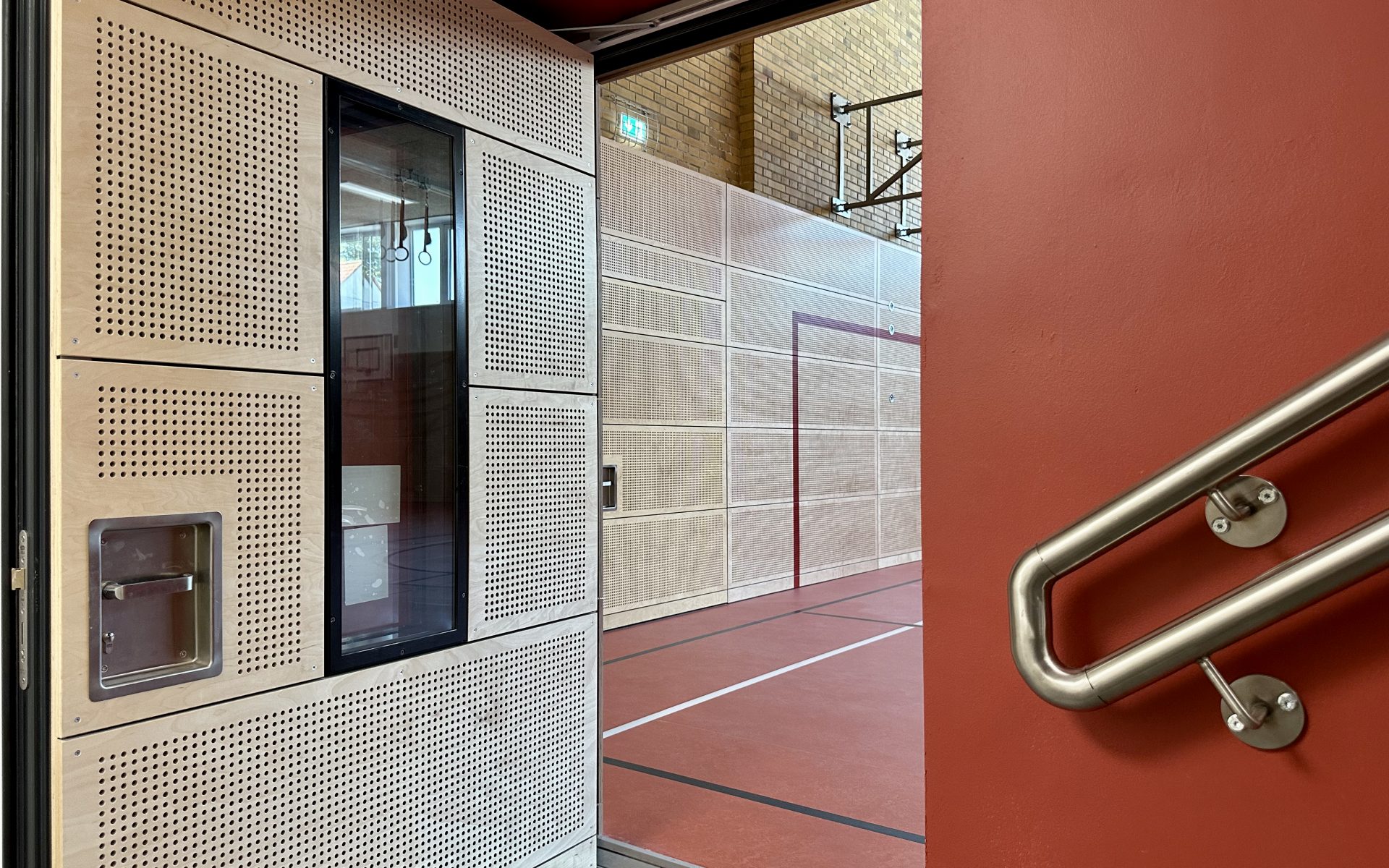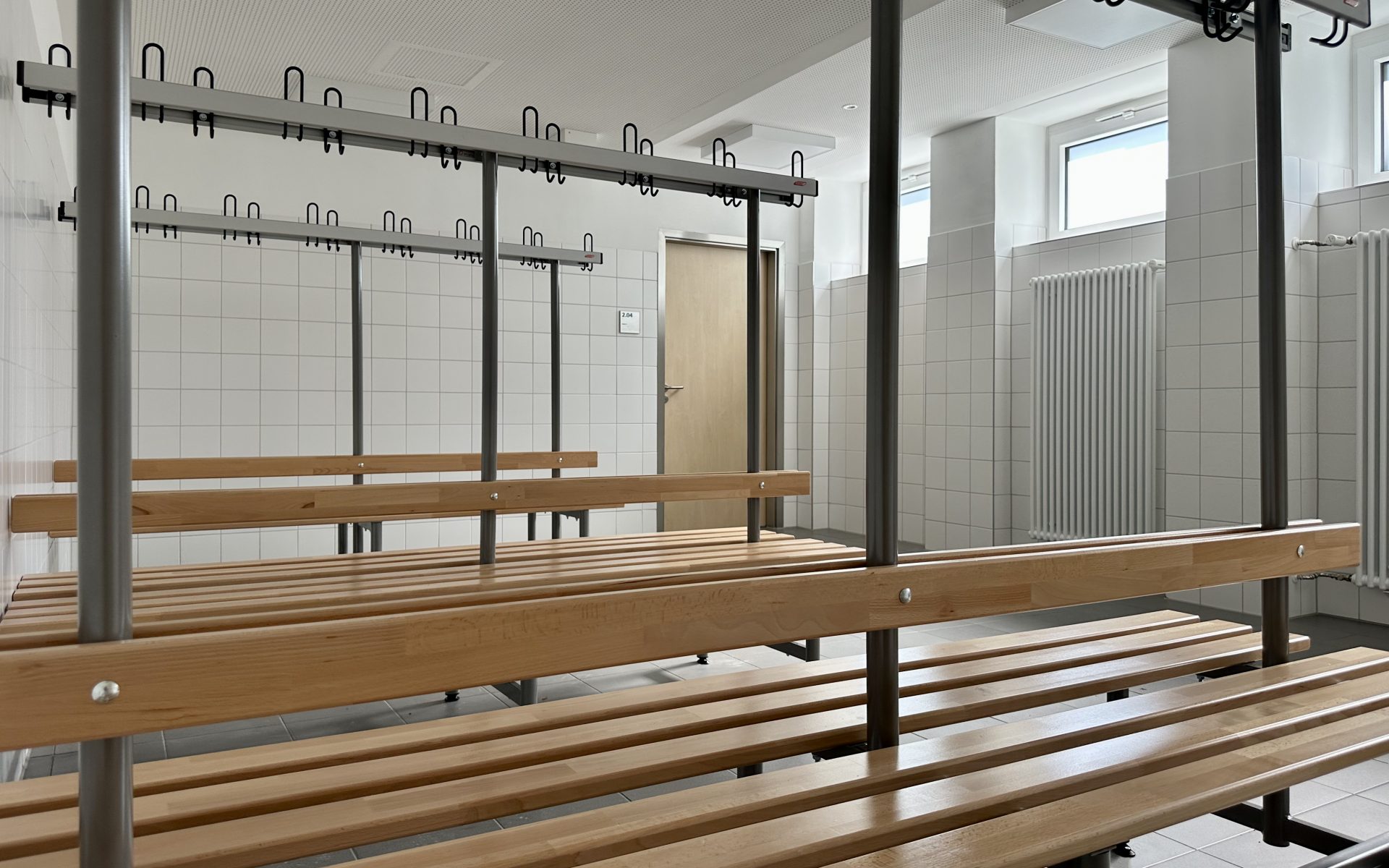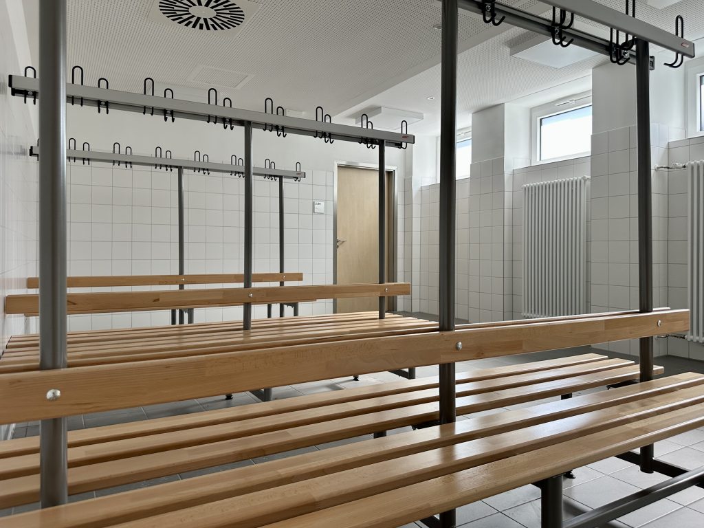 Da auch die Nutzbarkeit für Sportunterricht und Vereinssport nicht den heutigen Anforderungen entsprach, wurden auch die Sportgeräte neu angeschafft und die Sanitärebereiche grundlegend erneuert und in Ihrer Anzahl auf die benötigten Mengen angepasst. Auch in den weiteren Bereichen wurden die Decken raumakustisch wirksam verkleidenden.