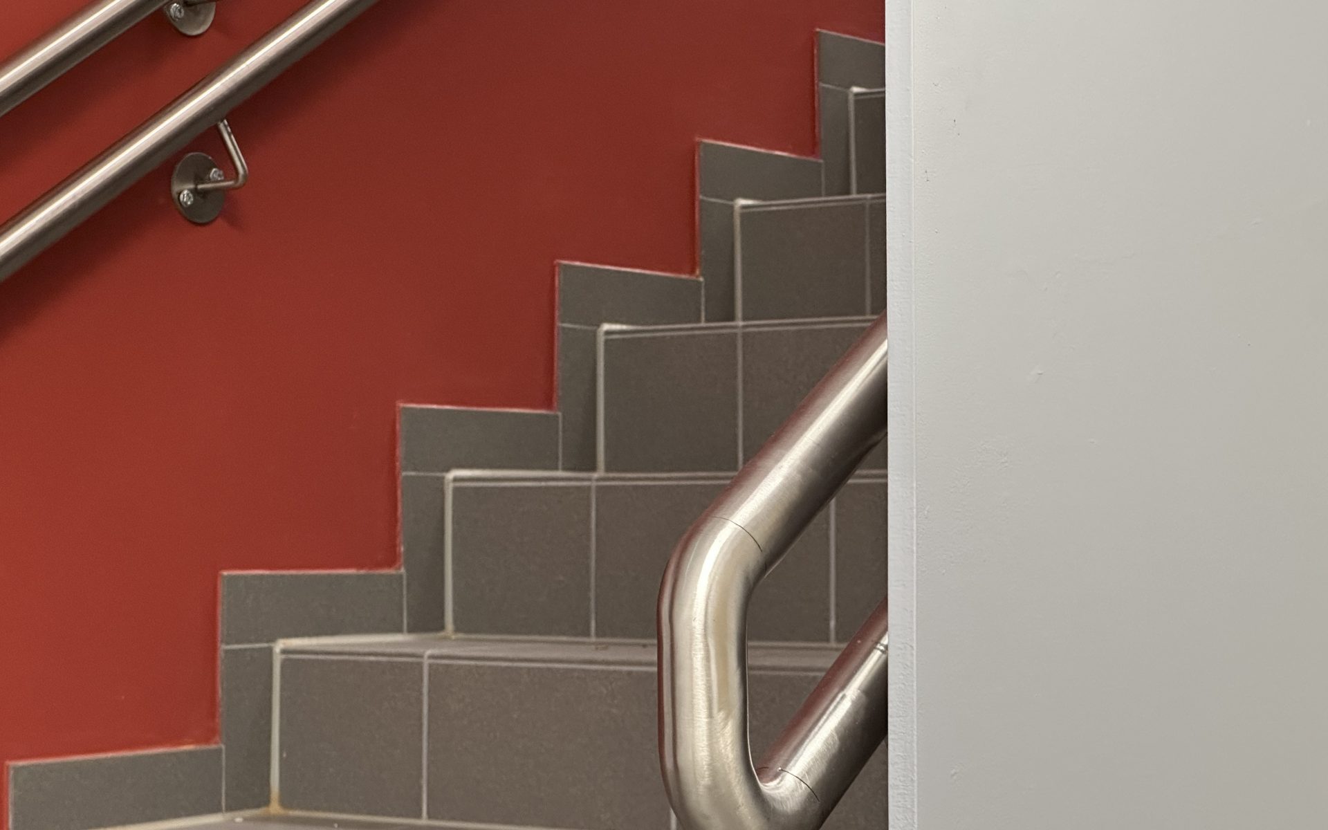 Die Fassaden der Turnhalle wurde als vorgehängtes, hinterlüftetes Fassadensystem aus Faserzementplatten energetisch saniert. Diese wurden horizontal und vertikal verlegt, sodass ein sinnvoll koordiniertes Fassadenbild aus roten Fassadentafeln entstanden ist. Die Aussengestaltung ist durch Fensterbänder aus offenbaren und festverglasten Fenstern vervollständigt.